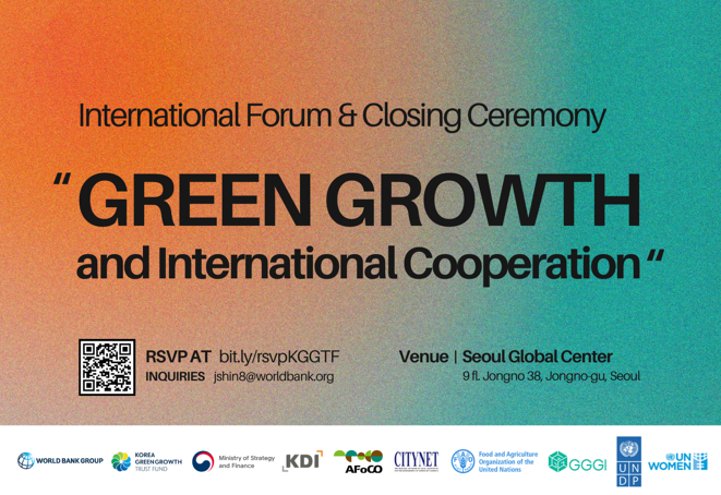 Mark your calendars for this green growth forum where you will discover the impactful work of leading international organizations in Seoul, including FAO, UNDP Seoul Policy Centre, AFoCO, GGGI, UNWomen, CityNet, and more. Additionally, keynote speakers from KDI and Kim & Chang’s Environment & Energy Research Institute will share on green growth and carbon financing.