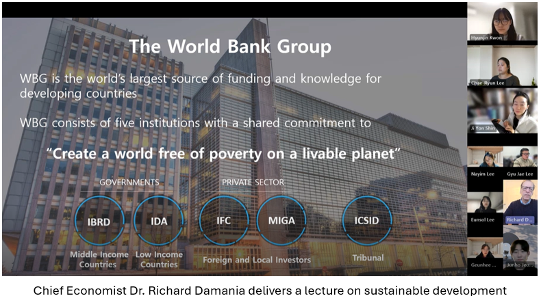 Recognizing the importance of empowering youth, the KGGTF Youth Internship Program offers a rare and comprehensive blend of academic insight and hands-on experience. Over six months, I participated in expert-led lectures on topics such as green growth strategies, which deepened my understanding of the multifaceted challenges of sustainability. In one particularly thought-provoking session, Dr. Richard Damania, Chief Economist at the World Bank, asked, “Can we deliver development that is sustainable and just?” and reminded me that “the World Bank is more than a bank - money is almost the least important thing.” This prompted me to look beyond technical fixes and consider what truly makes development sustainable and meaningful.