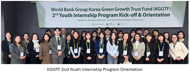 The Korea Green Growth Trust Fund (KGGTF), established in 2012 through a partnership between the World Bank and the Republic of Korea, promotes Green, Resilient, and Inclusive Development (GRID). To foster the next generation of sustainability leaders, KGGTF’s six-month Youth Internship Program empowers young professionals through expert-led lectures, immersive site visits, and project-based assignments - equipping them with the knowledge, skills, and networks to lead in sustainable development.